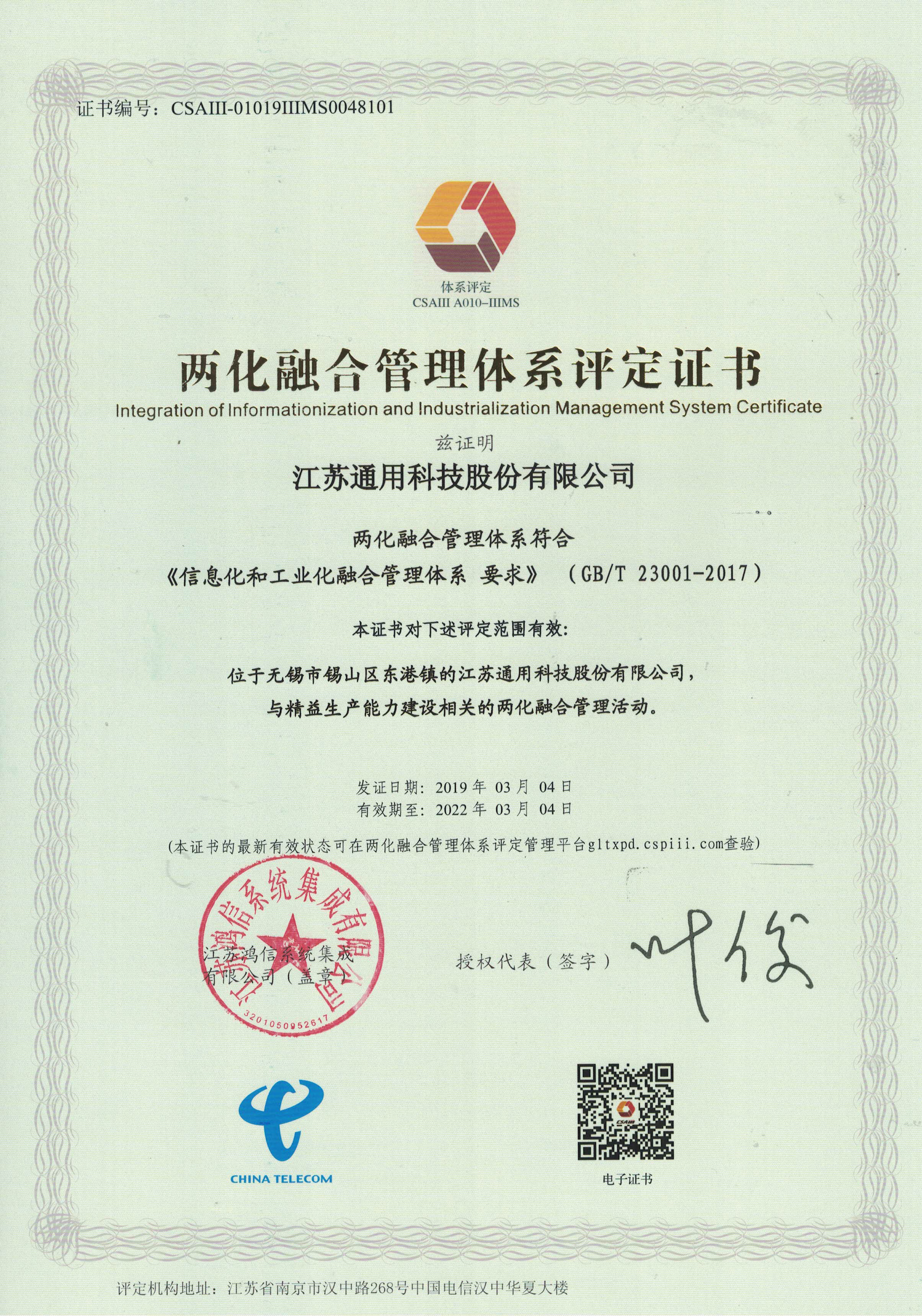 近日,通用股份順利通過(guò)國(guó)家兩化融合管理體系評(píng)定并獲得證書,評(píng)定范圍是與精益生產(chǎn)能力建設(shè)相關(guān)的兩化融合管理活動(dòng),標(biāo)志著公司在推