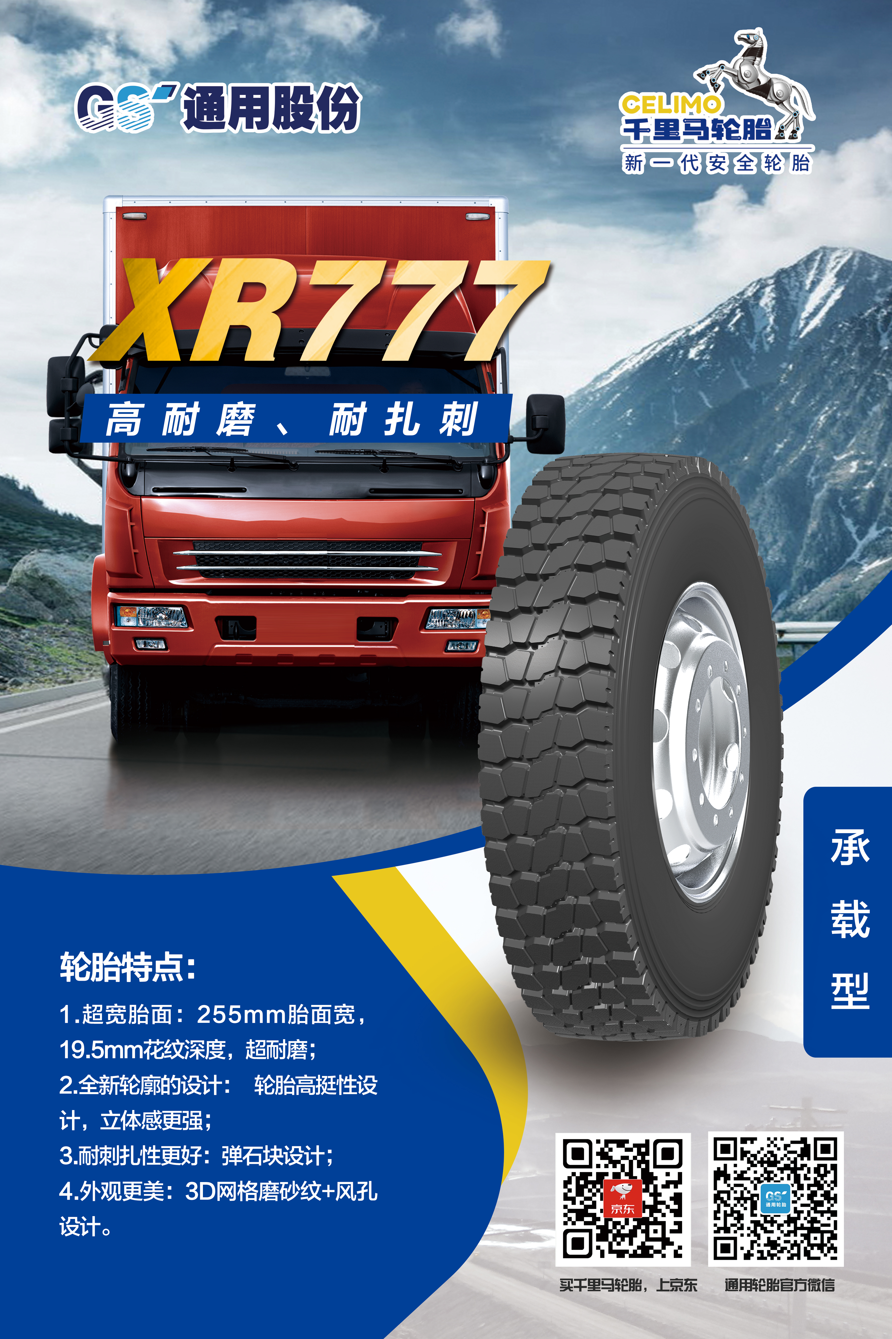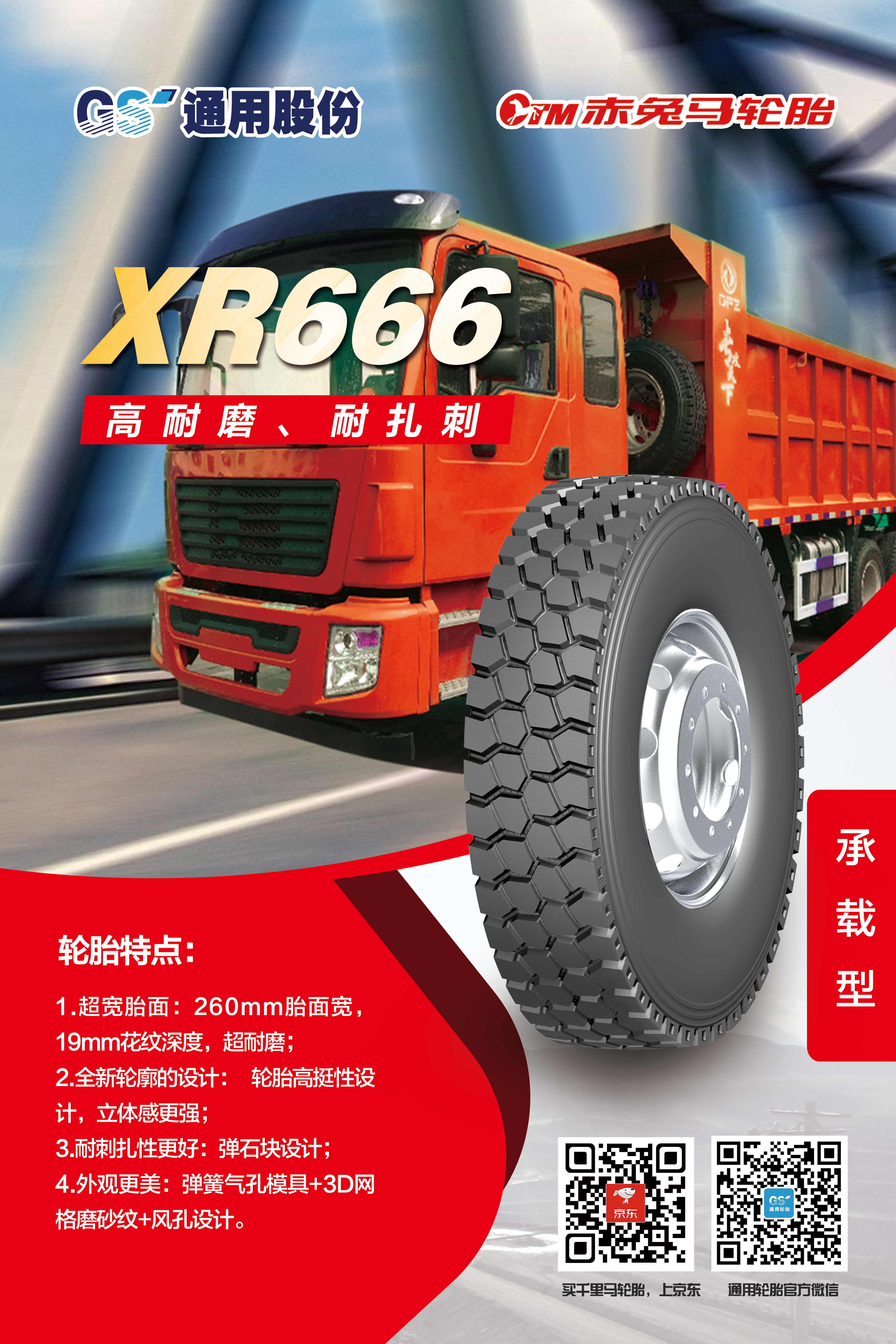 為適應(yīng)不斷變化的市場環(huán)境,滿足消費(fèi)者對(duì)輪胎性能的更高需求,通用股份以創(chuàng)新為突破口,應(yīng)用新進(jìn)技術(shù),在承載能力上實(shí)現(xiàn)突破,推出兩款專為中短途運(yùn)輸車輛量身打造的承載新品——XR666、XR777。作為全新承載系列,XR666、XR777使用全新低生熱胎面配方,耐磨、生熱性能較公司同類產(chǎn)品提升20%以上,有效解決輪胎用戶痛點(diǎn)。除了性能優(yōu)異,兩款輪胎的顏值也十分出色,均采用3D網(wǎng)格磨砂花紋以及全新輪廓設(shè)計(jì),簡潔而不失格調(diào),美觀而盡顯大氣。