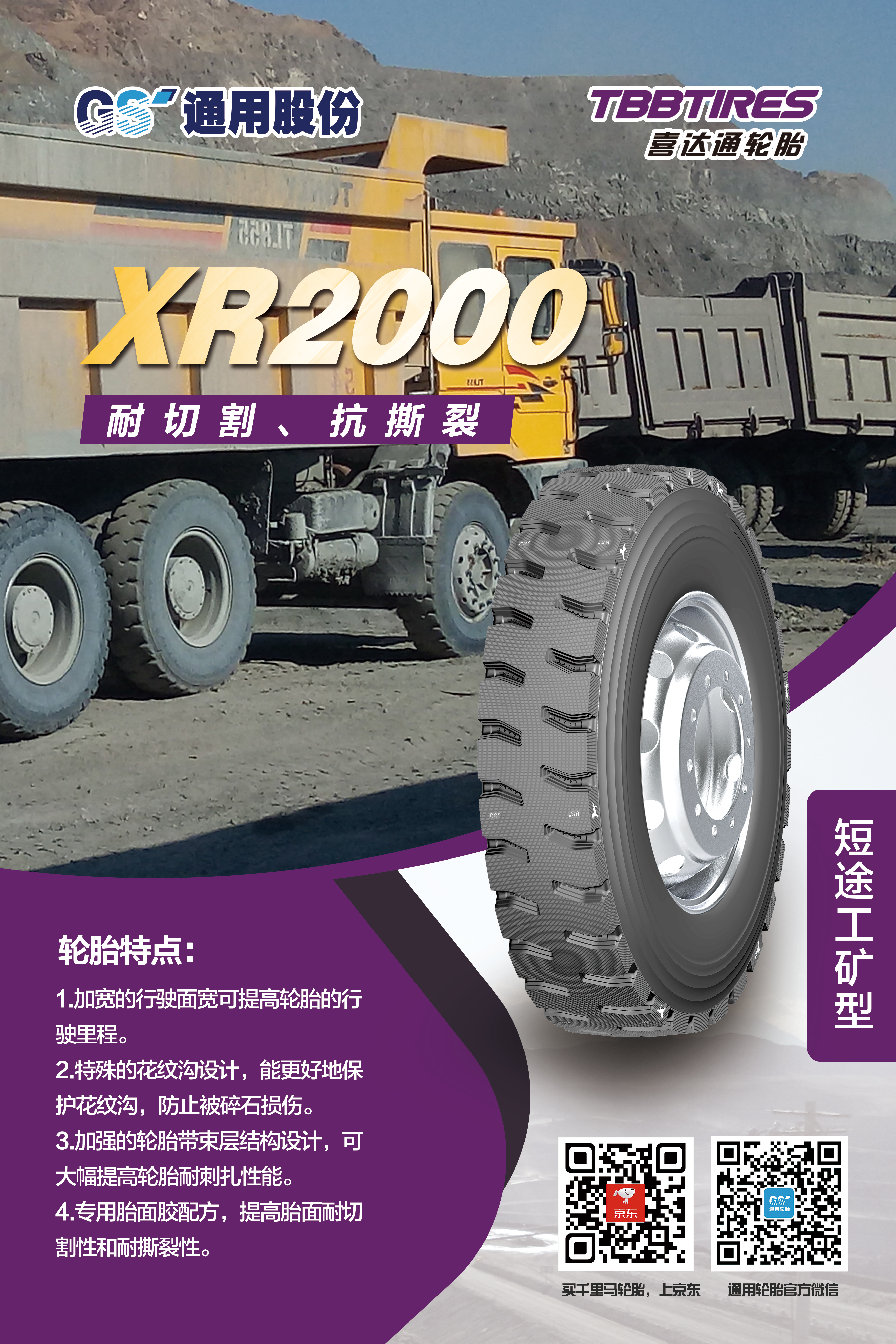 眾所周知,自2007年自主研發(fā)的第一代短途礦山胎問世,通用股份在行業(yè)率先開創(chuàng)了礦山胎這一品類,充分滿足礦區(qū)特殊使用條件和特點(diǎn),備受中國礦山車司機(jī)的喜愛。近年來,通用股份立足國內(nèi)礦區(qū)路況特點(diǎn),對(duì)輪胎花紋、配方、結(jié)構(gòu)等進(jìn)一步升級(jí),重磅推出礦山胎傳承之作——XR1000、XR2000。兩款輪胎均擁有全新的外觀設(shè)計(jì)、獨(dú)特的結(jié)構(gòu)設(shè)計(jì)、高耐磨配方設(shè)計(jì)。全新胎面配方的應(yīng)用,大幅提升胎面耐刺扎性能。加強(qiáng)的輪胎帶束層結(jié)構(gòu)設(shè)計(jì),大幅提高輪胎耐扎刺性能。加寬的行駛面,有效提高輪胎行駛里程。相關(guān)數(shù)據(jù)表明,相比同類產(chǎn)品,耐久時(shí)數(shù)提升20%,胎圈耐久提升30%,是廣大礦山胎用戶的信心之選。