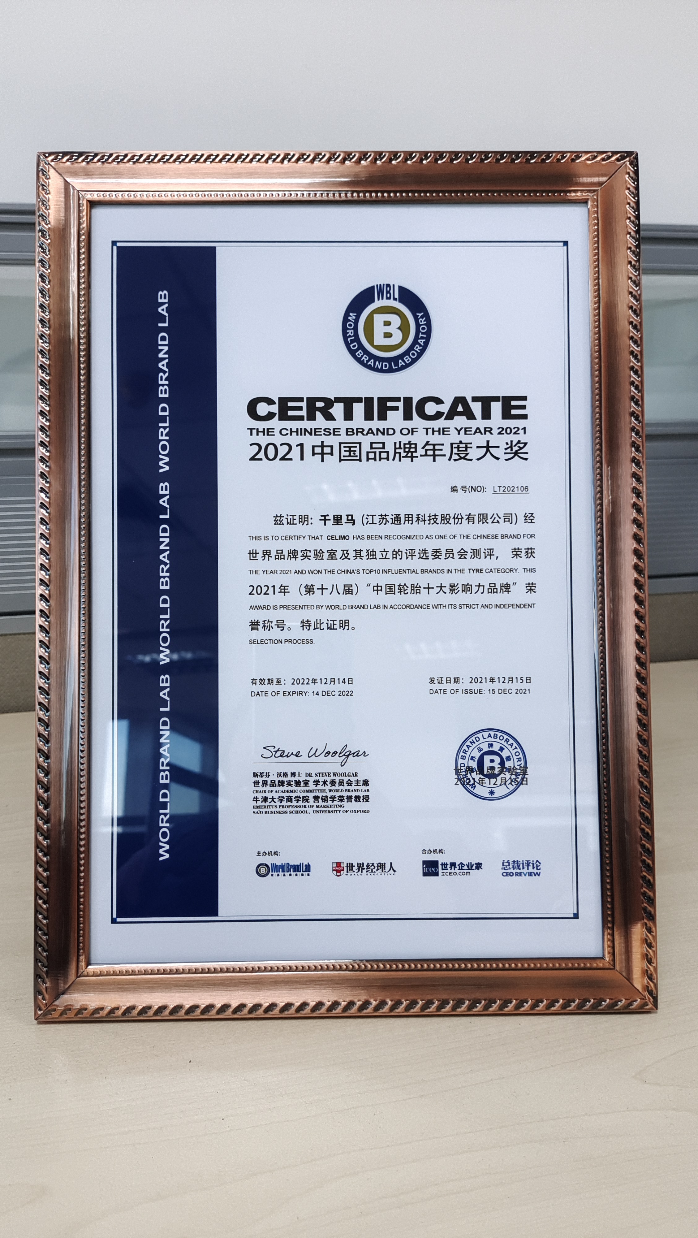 12月15日,由世界經理人集團(World Executive Group)、世界品牌實驗室(World Brand Lab)聯合主辦 2021年“世界經理人峰會”暨“(第十八屆)中國品牌年度大獎發布會”在北京隆重舉行!通用股份千里馬品牌扎根行業二十余載,憑借知名度、美譽度和創新力等方面的品牌影響力,連續第三年入選“中國輪胎十大影響力品牌”!
